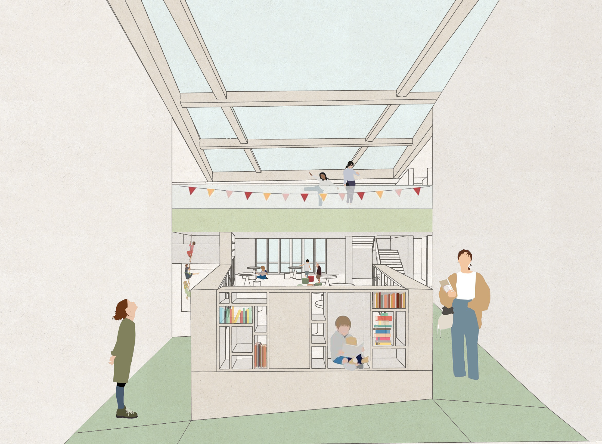The main idea is to generate a fluid, dynamic and colorful space to let children avoid the monotony. This is reached following the dislevels of the ground solved through ramps accessible by everyone. Connective spaces are not only hallways but can host several functions becoming places for sharing and socialization, as the library-ramp in the middle. Double heights and skylights provides natural indirect light and ensure the visual connection between the spaces.
