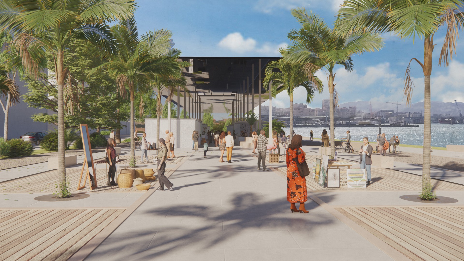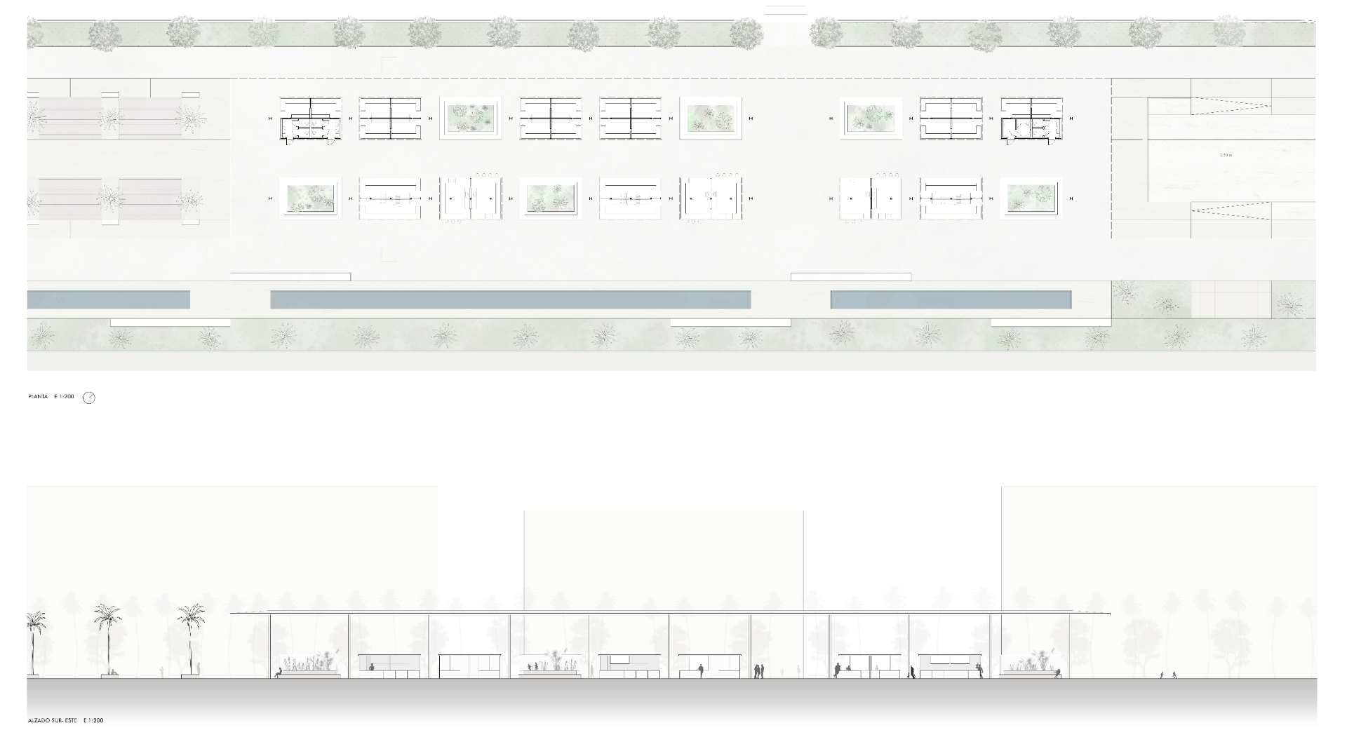 As a first step, the market has to be located in a safe area, distant enough both from the traffic of Avenida Heredia and from the port. It also has to be respectful of its context and preserve open views toward both the sea and the city. For achieving this, I choose a simple, non- invadent steel structure with a thin canopy. The idea was to design a building that acts like a "bridge" between the existent city and its waterfront, in a physical but also in a visual way as it proposes as an open door connecting the two systems.